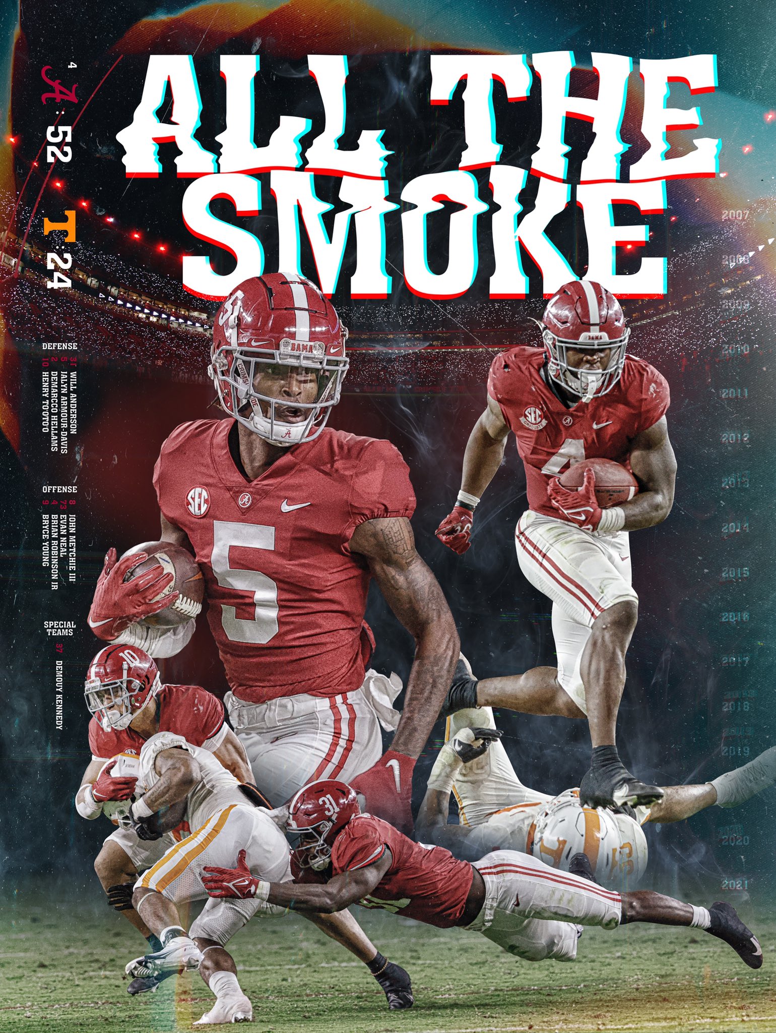 TUSCALOOSA, Ala. – The Alabama coaching staff named nine players of the week following the Crimson Tide's 15th straight win over Tennessee, a 52-24 victory last Saturday in Tuscaloosa. John Metchie III, Evan Neal, Brian Robinson Jr. and Bryce Young on offense; Will Anderson Jr., Jalyn Armour-Davis, DeMarcco Hellams and Henry To'oTo'o on defense; and Demouy Kennedy on special teams all earned the recognition for their play in the rivalry game.