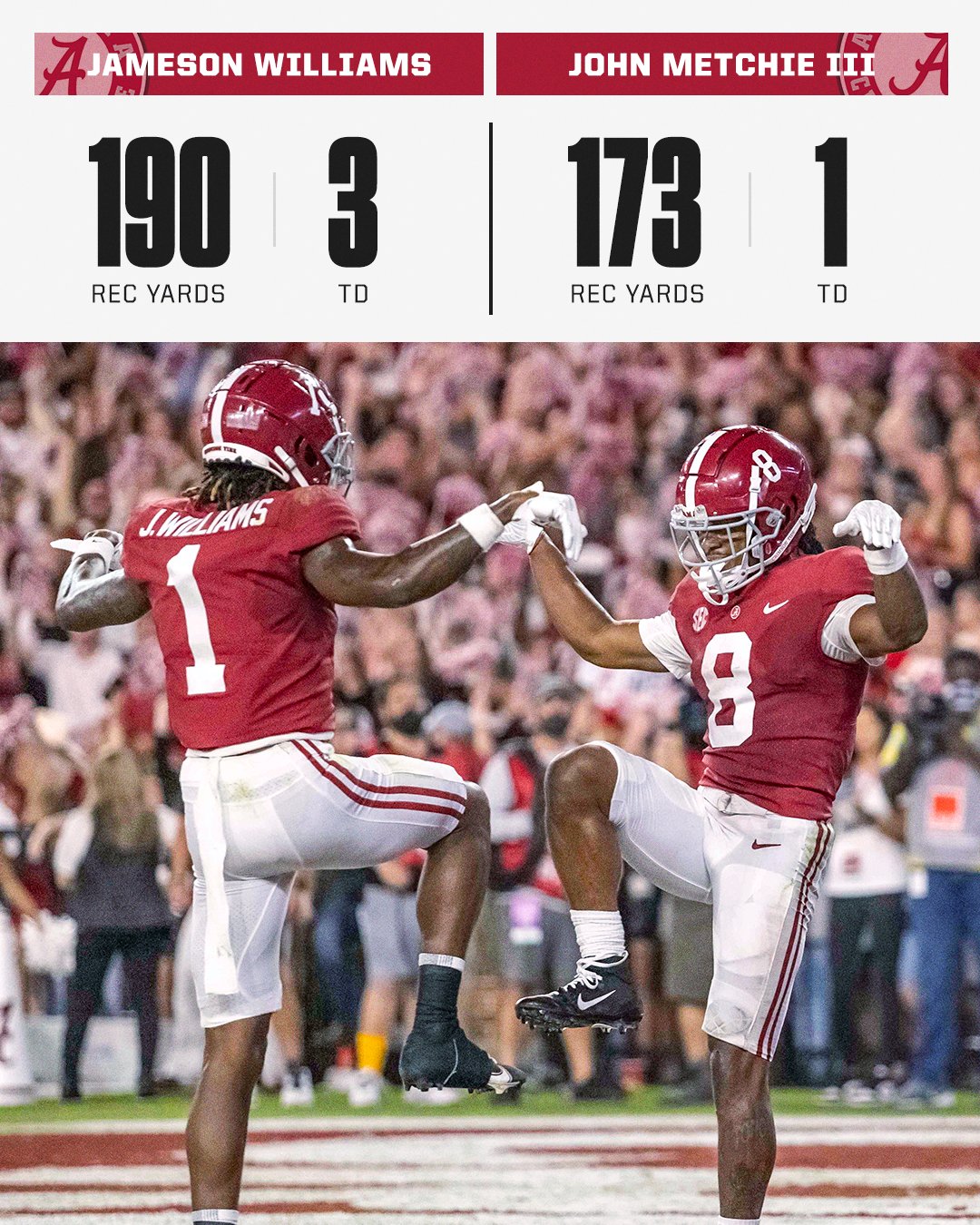 No @AlabamaFTBL duo has ever combined for more receiving yards in a single game