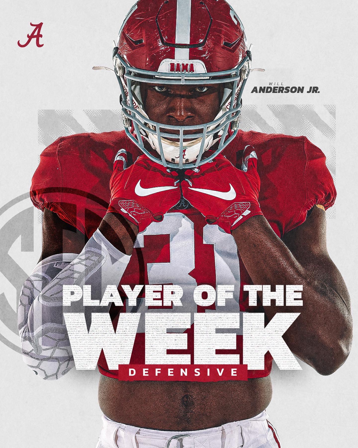 Alabama’s Will Anderson Jr. Selected as SEC Defensive Player of the Week