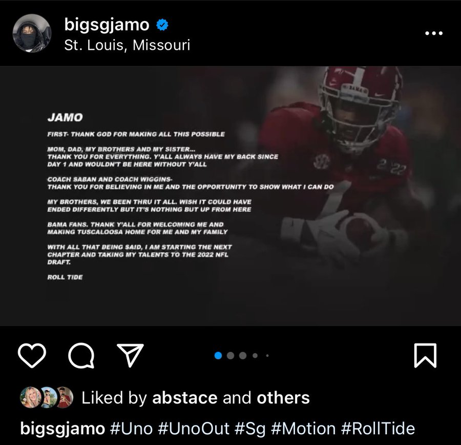 LINK ]Alabama junior WR Jameson Williams declares for 2022 NFL Draft (BOL)