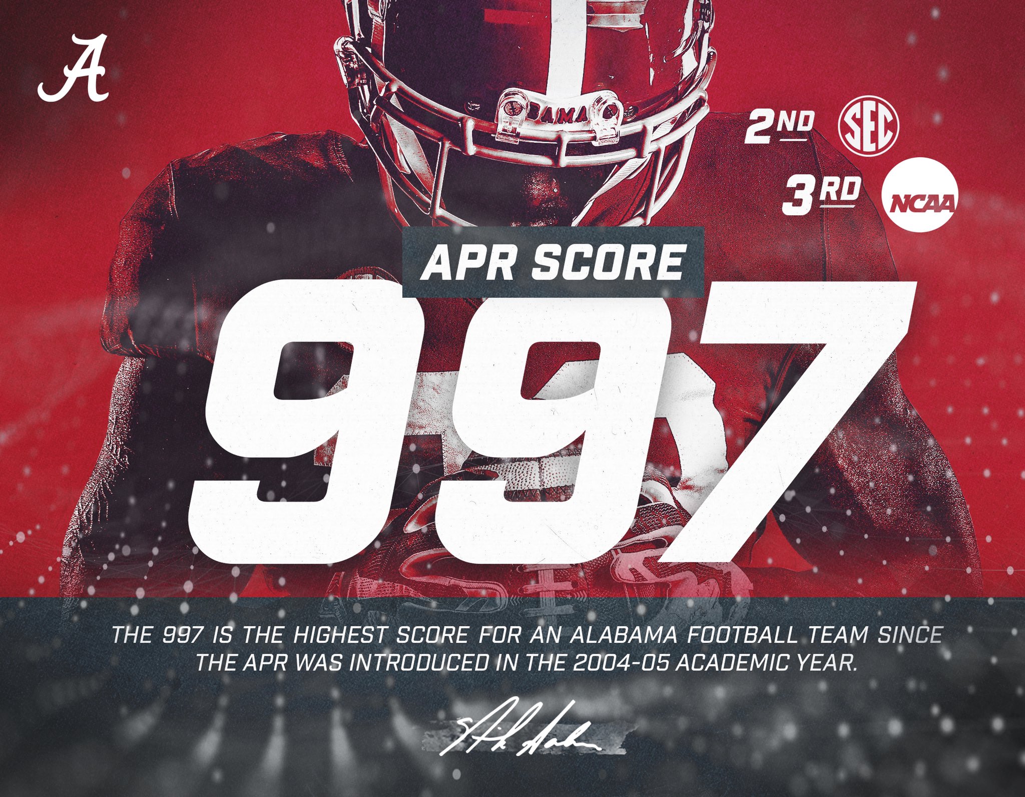And among football programs, the Crimson Tide had the third-highest score among FBS schools. Its 997 ranked behind only Clemson and Ole Miss, both of whom scored 999