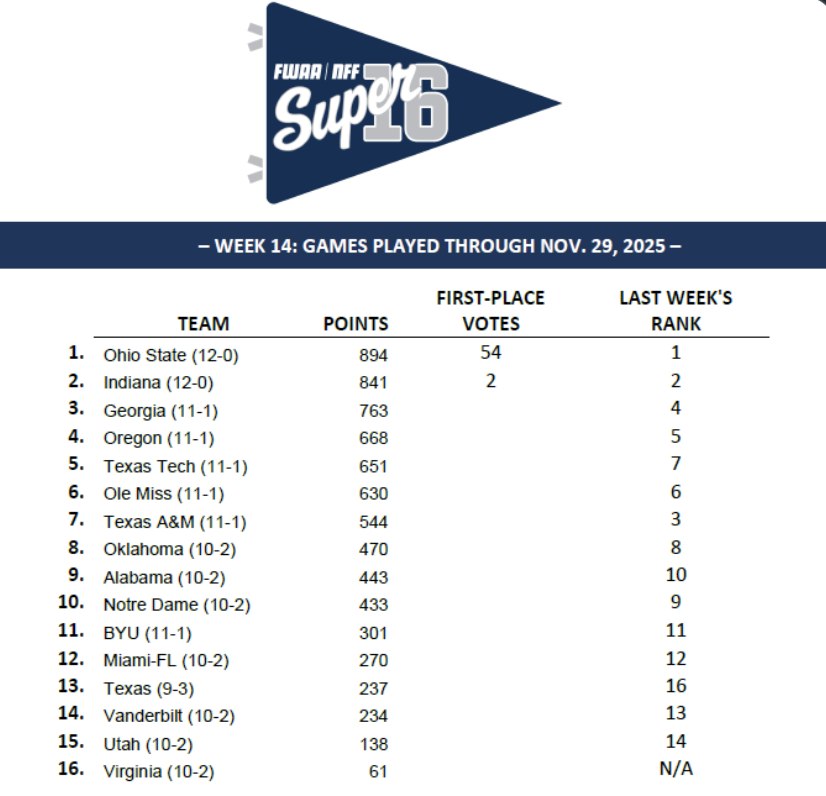 BAMA jumps ND in FWAA rankings