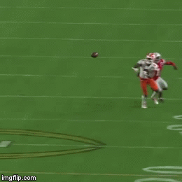 quote:Those steps took less than 1 second of time and the defender got a hand on the ball during that fraction of a second and broke up the catch. Ultra slow motion makes it look more like a catch. In realtime, it looks like a bang-bang breakup of an attempted catch, more like he hadn't fully secured sole possession of the ball.