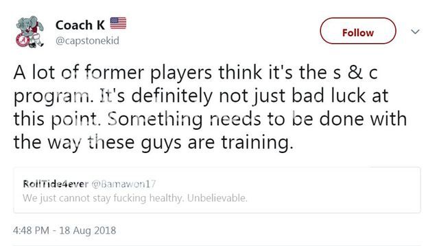 quote:we've had the same s&c coach for like a decade. We were not unusually injury prone until last year