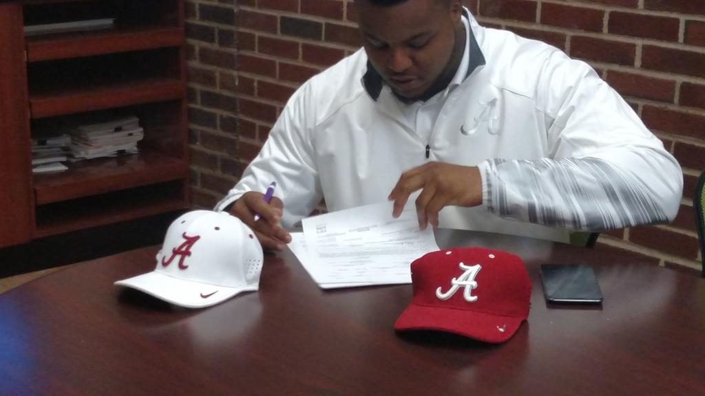 @ASA_AVENGER_FB OL Charles Baldwin signing with @AlabamaFTBL