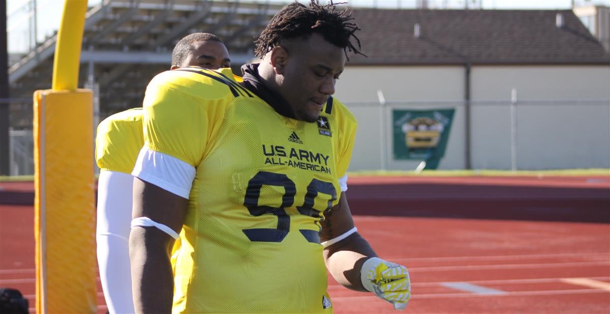 Do we have a candidate for No. 1? We've seen No. 1 players in San Antonio before and Clemson commit Dexter Lawrence had that kind of presence on the first day of practice for the East. Lawrence smoked the other defensive tackles in a 40-yard dash and looked downright speedy doing it. During 11on11 and one-on-ones he was dominant. Offensive linemen couldn't handle his blend of physicality and agility. Lawrence is special.