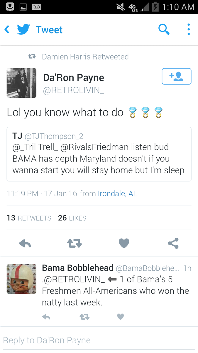 And a retweet by Damien Harris. Looks like Saban gave the young guys the marching orders this week