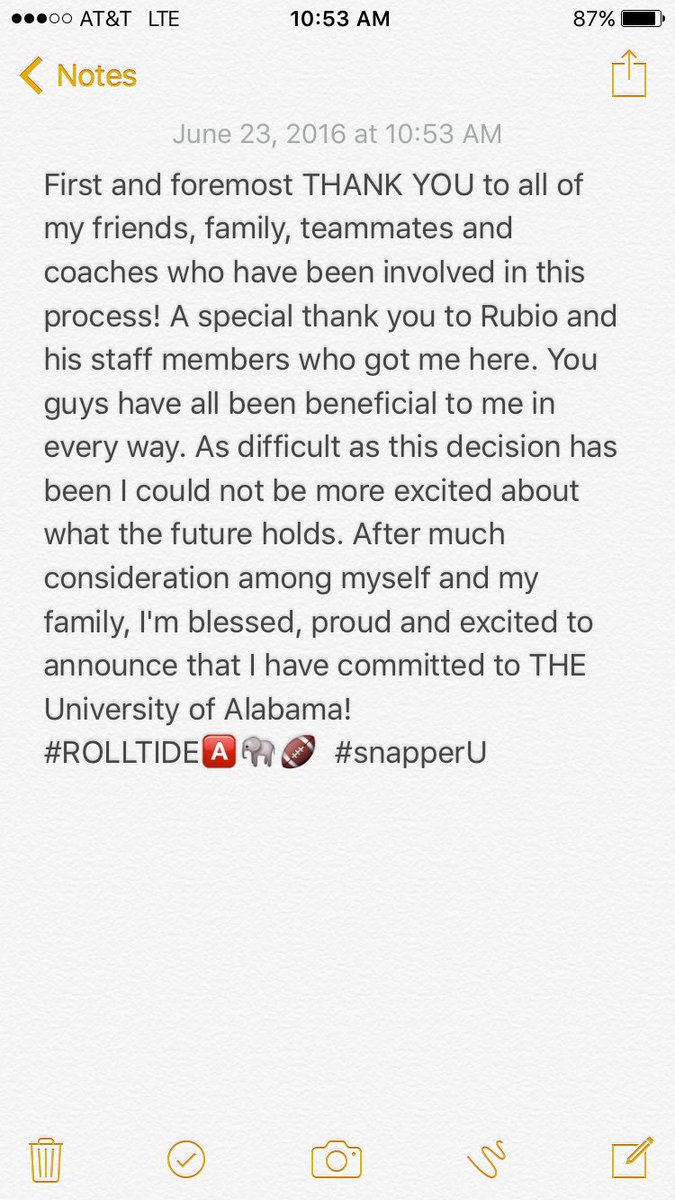 Bama just got a commitment from the #1 longsnapper, Thomas Fletcher.