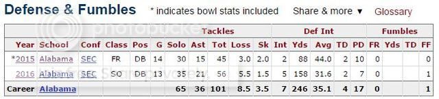 Minkah had 5 interceptions for 158 yd. & 2 TDs to White's 2 intercetions for 21 yd. & 1 TD.
