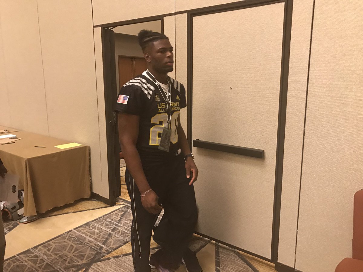Alabama commit Jerry Jeudy has been good this week at the Under Armour game and will be a contender for No. 1. Conversely, current No. 3 wide receiver Tee Higgins has not looked the part. One other darkhorse candidate for No. 1 at wide receiver could be Henry Ruggs III, a guy that had as good of a senior season as anyone in the country and who was outstanding at the Alabama-Mississippi All-Star game.
