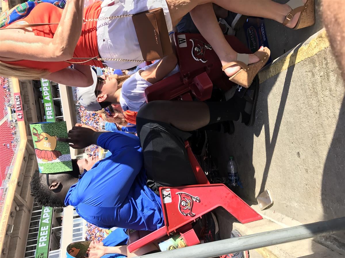 A poster on our UF site posted a picture of Leatherwood at the UF/ Iowa bowl game today. The UA staff was aware he would be stopping at this game on his way home from the under armour game. Just an FYI.
