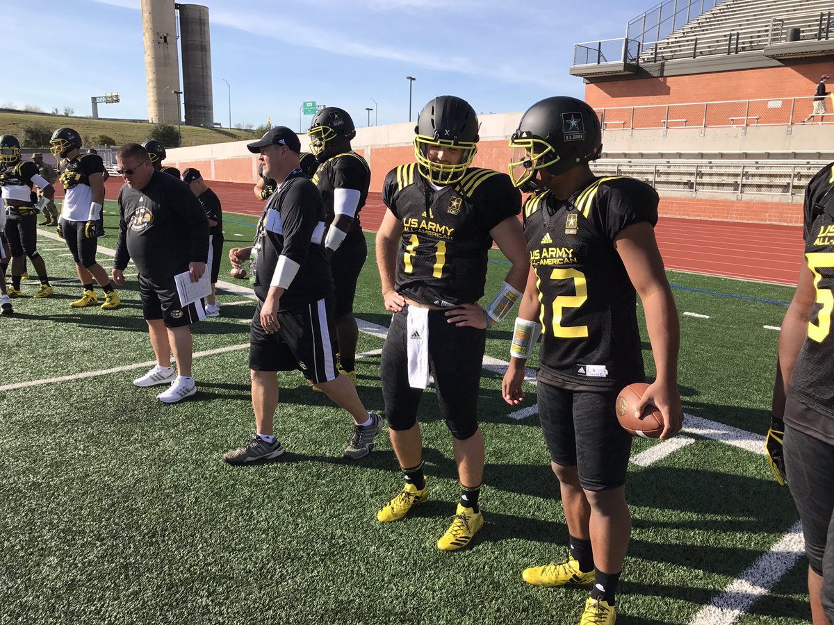 Former #Bama QB commit Jake Fromm with current commit Tua Tagovailoa at East practice @ArmyAllAmerican