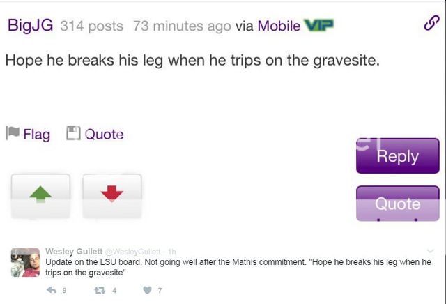 On Tuesday evening 4-star defensive lineman Phidarian Mathis, made his commitment to Nick Saban and Alabama official. Ultimately, it came down to LSU and the Crimson Tide for the talented Louisiana product, and as a result of his decision, a sizeable proportion of the LSU was upset at the home-state kid leaving for the Tigers’ arch rival. So upset, in fact, that some have wished harm on him on various LSU message boards: