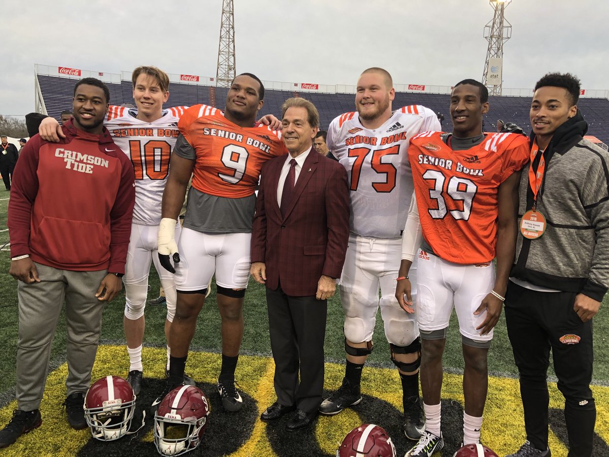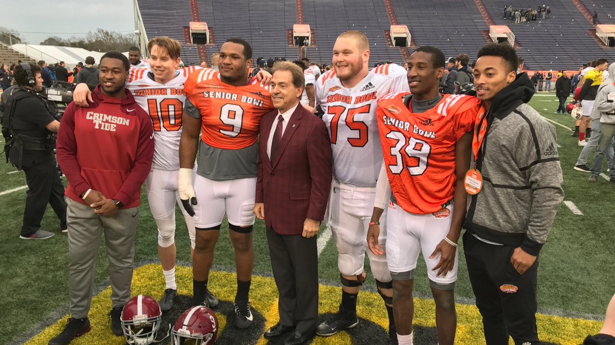Coach Saban at the Senior Bowl with our players, Shaun Dion Hamilton, JK Scott, Da’Shawn Hand, Bradley Bozeman, Levi Wallace & Anthony Averett.