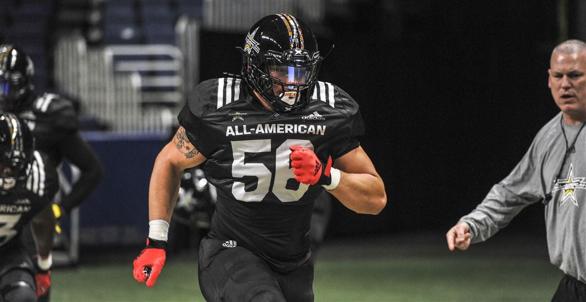 1. OL, Evan Neal, Bradenton (Fla.) IMG Academy- Neal had another strong day and was in contention for Alpha Dog. He moved around a bit and played both left tackle and right guard. At tackle, he was tremendous and always amazes us how a kid his size moves as easily as he does. He lost a couple of reps at guard but as tall as he is, we’ll be surprised if he ever lines up in the interior part of the line. His wins at tackle were as impressive as anyone and many times an opposing end didn’t get past the line of scrimmage.