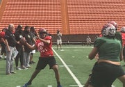 After missing the majority of the All-American Bowl week, Taulia Tagovailoa has shaken off the rust and throwing well so far in the early morning practice