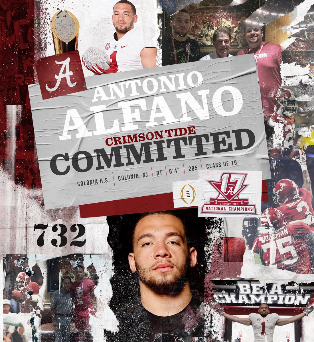 Alabama defensive line commitment Antonio Alfano joined the Crimson Tide’s 2019 class back in May. The Colonia (N.J.) product is looking forward to getting to Tuscaloosa and representing his home state.