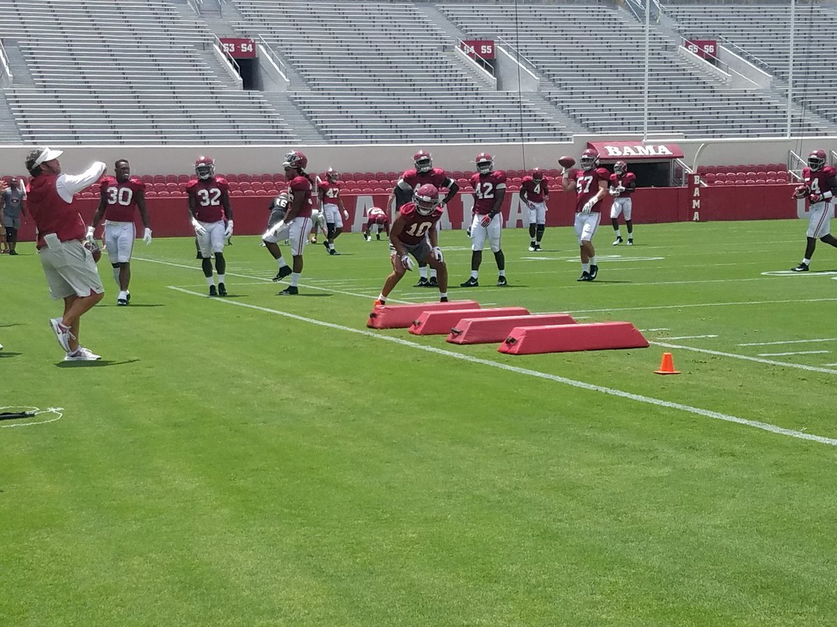 Linebacker Ale Kaho, who got his release from Washington earlier this week, wore No. 10 while Alabama went through individual drills but did not sport pads. Since he never enrolled at UW he was eligible to join the team immediately.