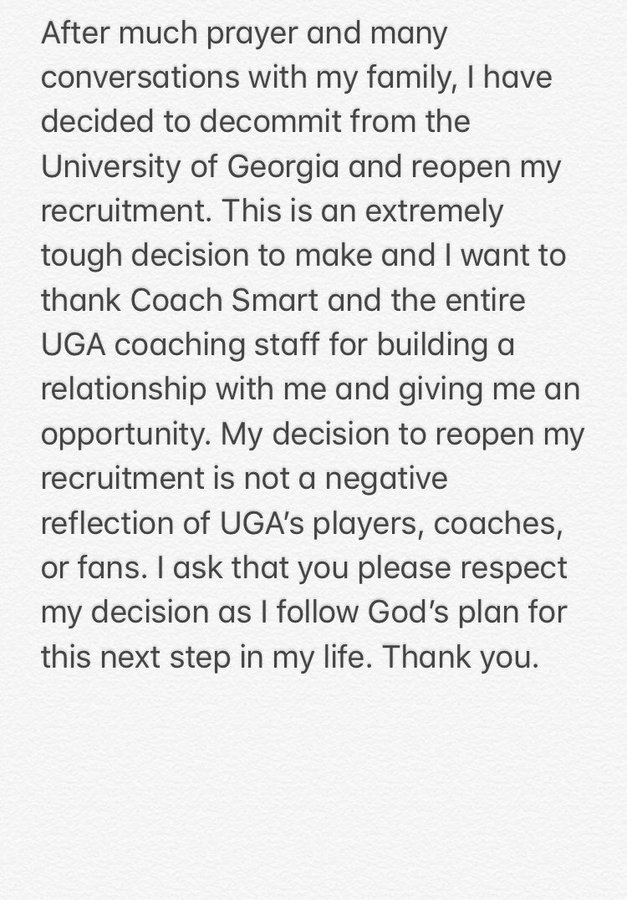 Something going on in Athens. Haselwood decommits after visiting there last weekend. Jalen Perry, 4* DB, just decomitted. ESPN Radio said today that Justin Fields may seek hardship transfer.
