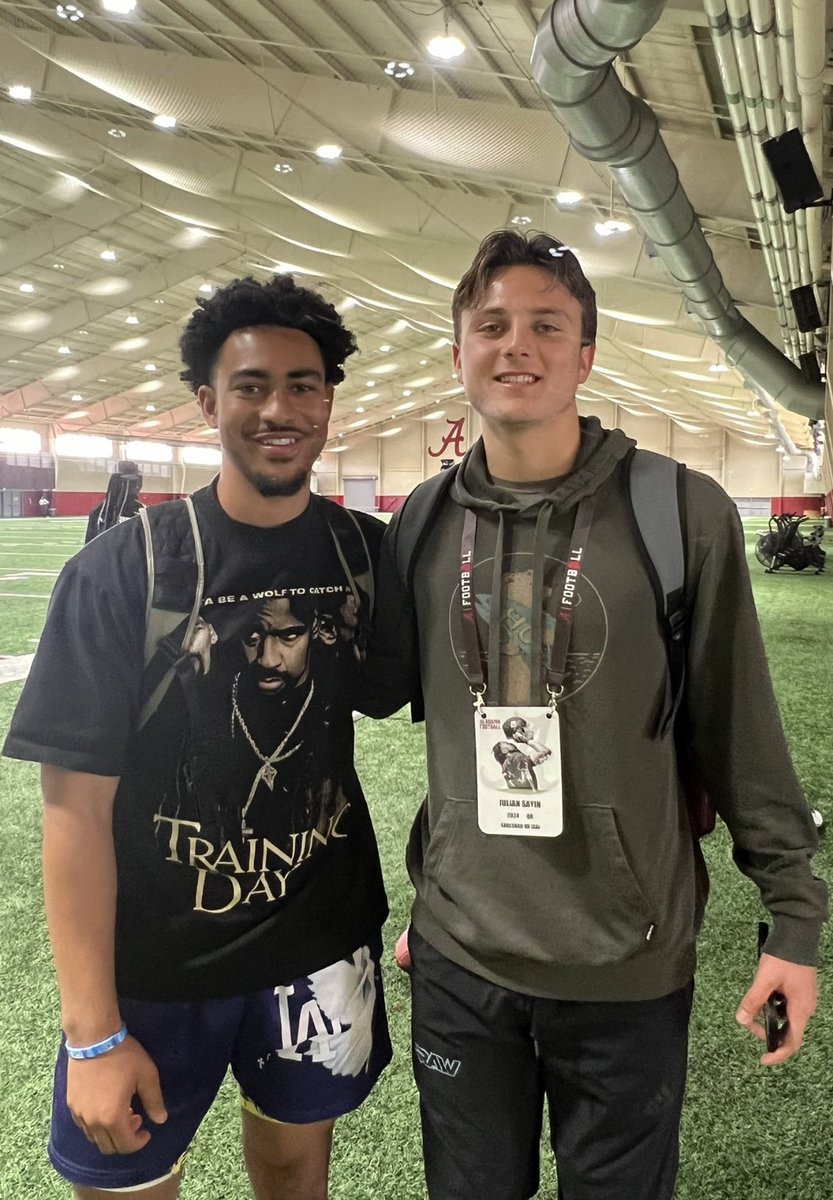 5 star Julian Sayin with Bryce Young in Tuscaloosa today.