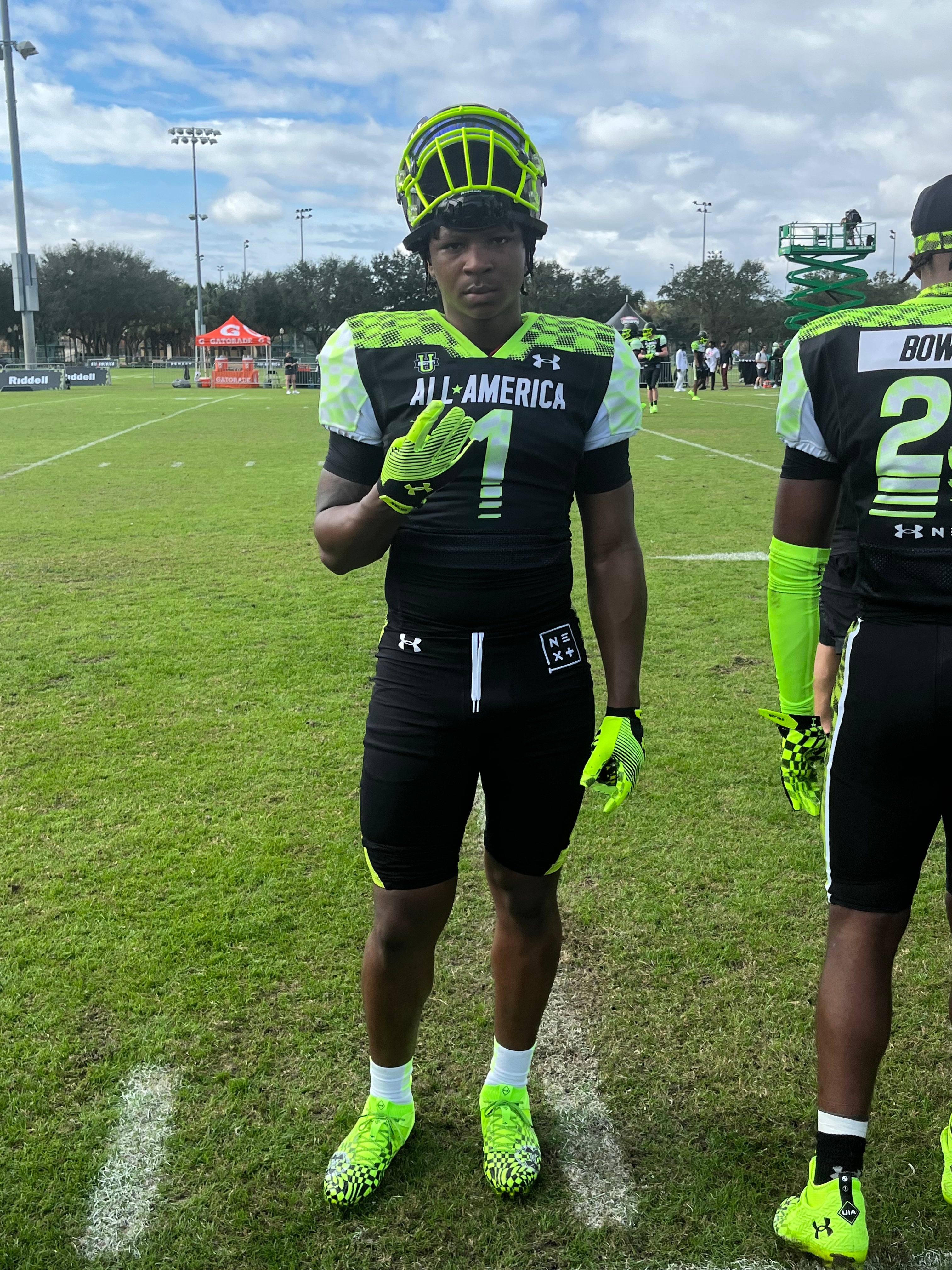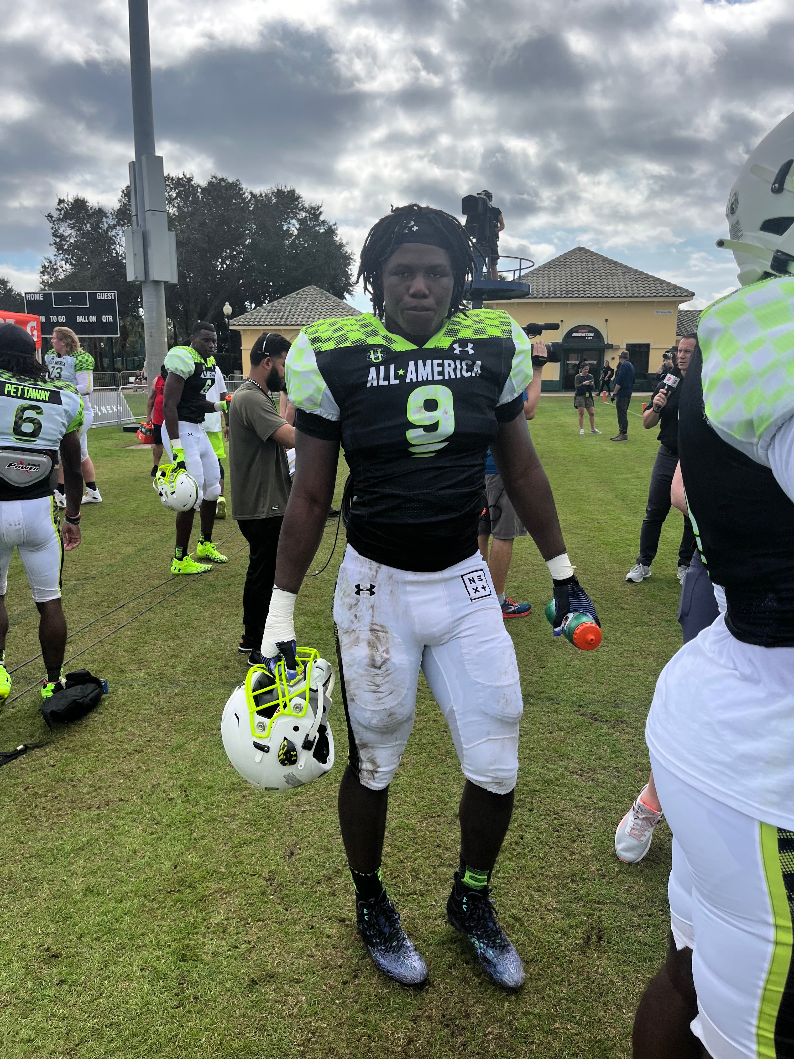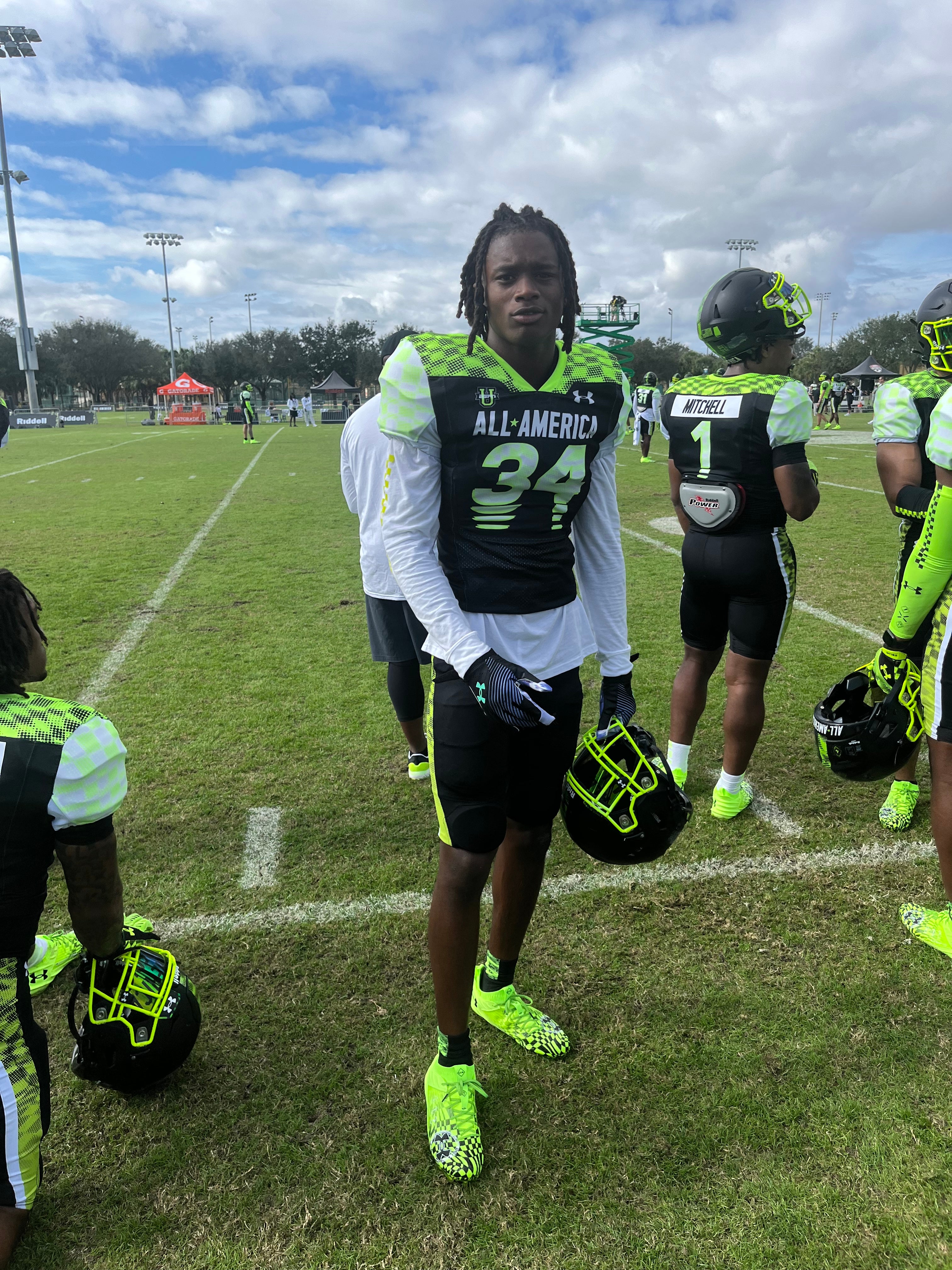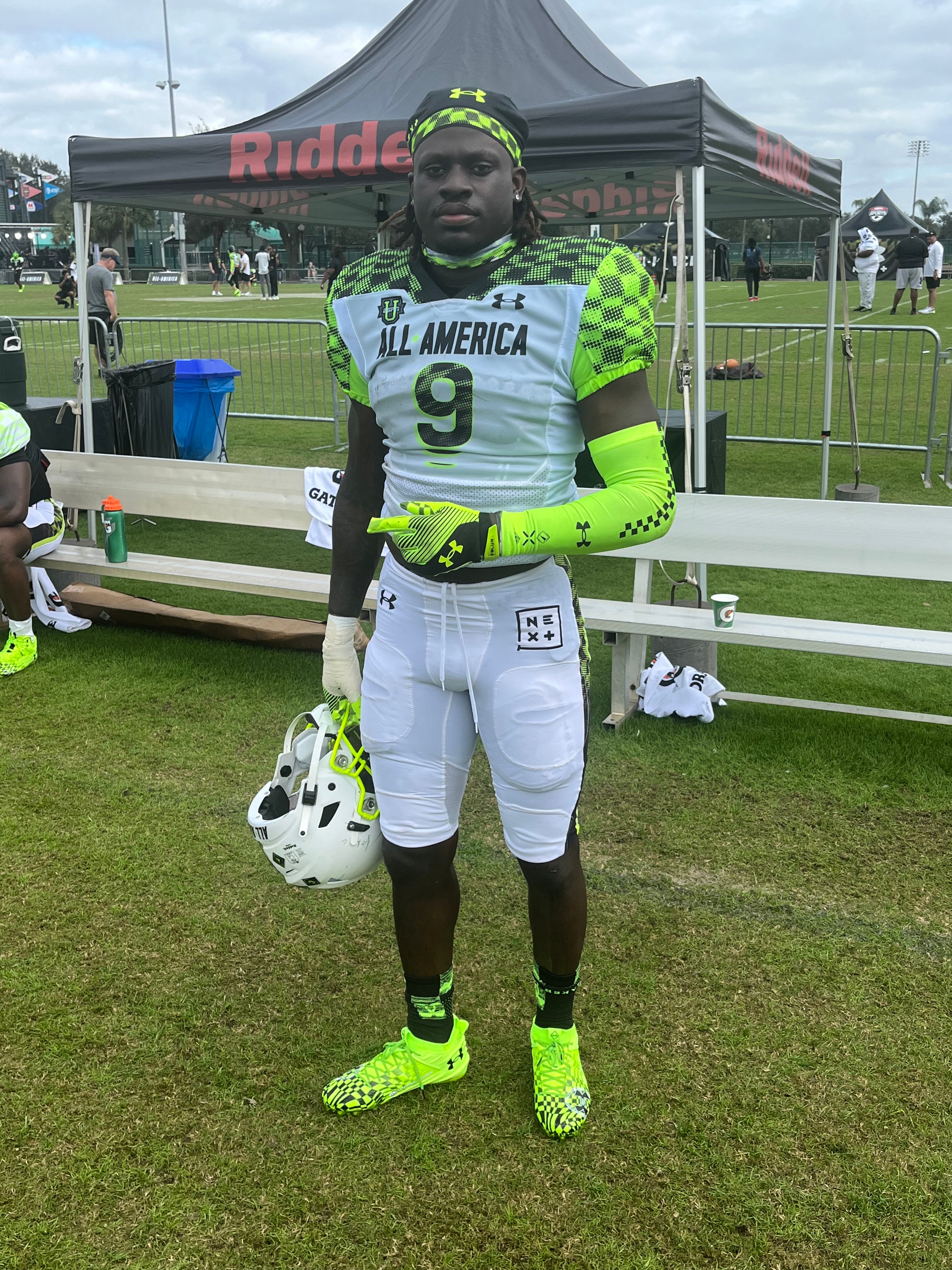 + We were able to get a more extensive look at the Team Phantom defensive backs. Alabama signee Desmond Ricks may be the tallest corner on hand, looking to be around 6-foot-2. While things were not full speed, Ricks looked comfortable on Friday night. Georgia safety signee Joenel Aguero also caught our eye with his twitchy movements on the back end.