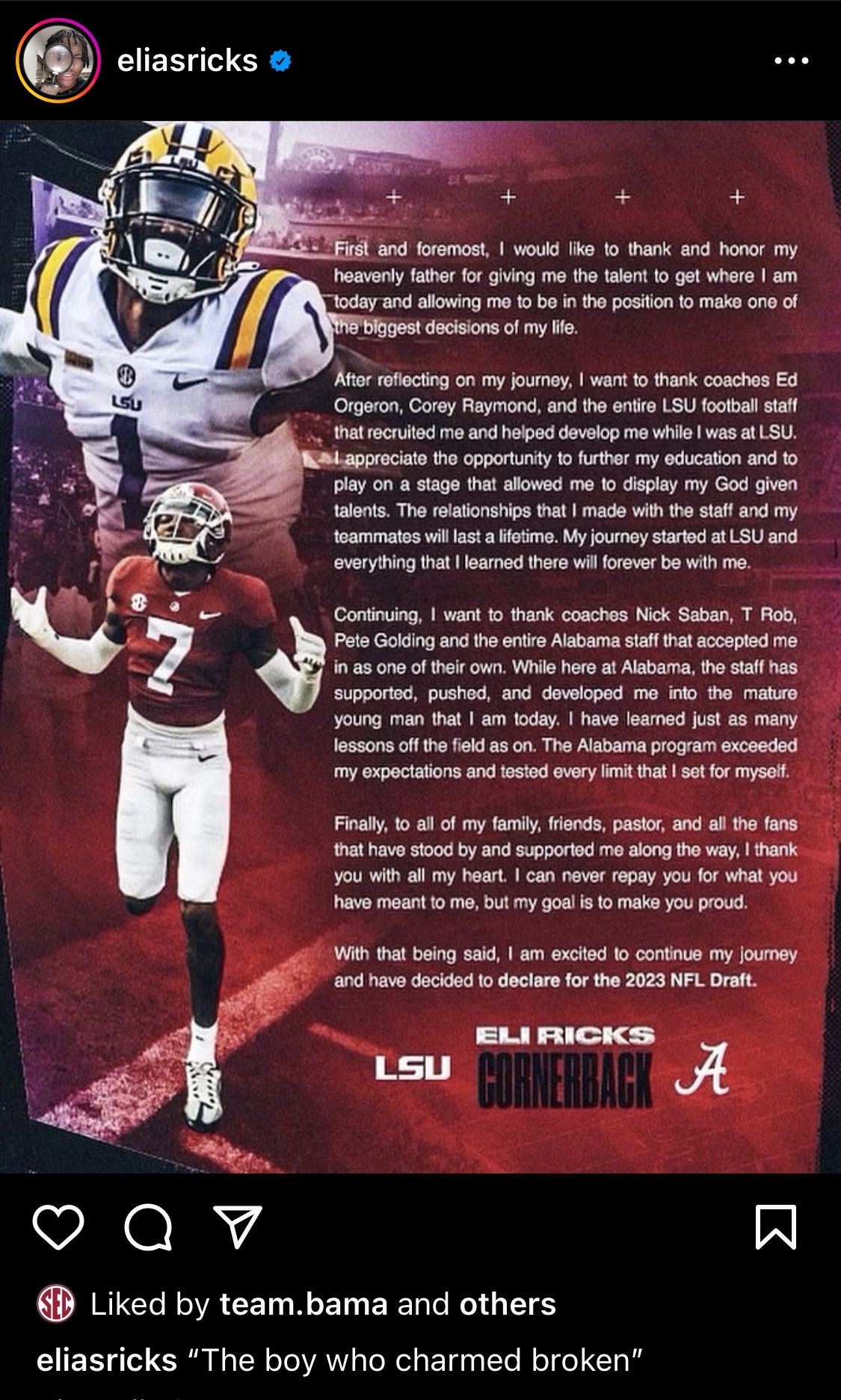 He made a bad decision... could have really improved his stock in 2023 and gotten a much bigger rookie contract, but I wish him well. He'll definitely get drafted... guessing 3-4th round.