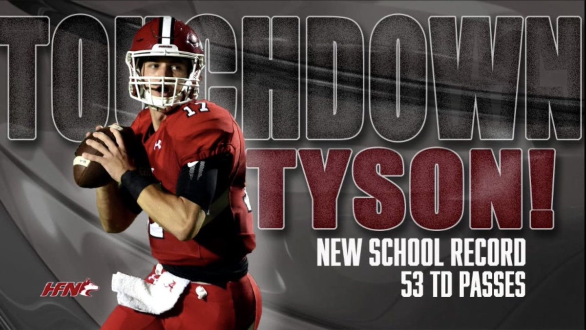 Per @HuskyFastNet broadcast, 4-star QB and #Alabama commitment Paul Tyson just became the career TD leader at Hewitt-Trussville High. Huskies up 24-0 over Huffman late 2Q. LINK … @HankSouth247