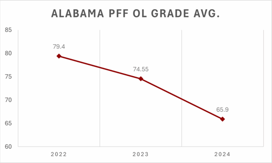 The dropoff in the OLine from '20-'21 was incredibly bad. Bryce Young winning a Heisman with that unit was a miracle.