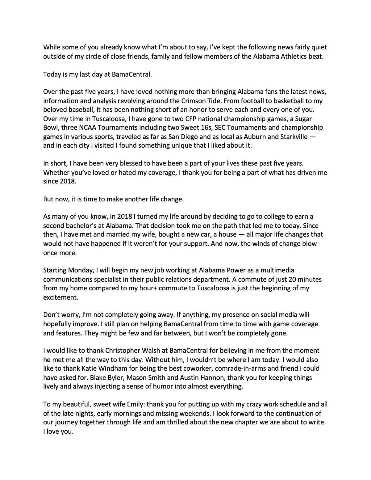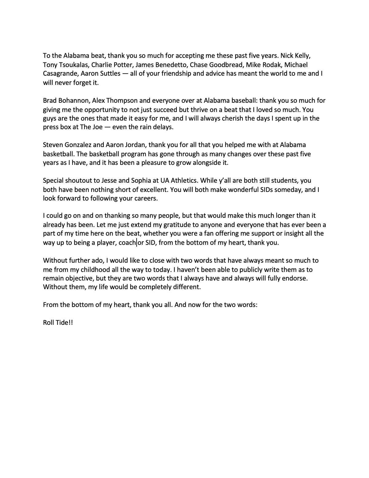 Happy for him but I hate to see this. He has been the main writer for Bama baseball and covered numerous other Bama sports. Many of the SI articles I post come from him. He wrote the article indicating the media owed Brandon Miller an apology before SI pulled it down. Thanks for covering Bama and cheers to you, Joey.