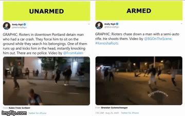 Took a lot longer for the "but Chicago" whataboutism bullshite to show up. I'm surprised you were able to restrain yourself for that long. The existence of riots or murders in the city of Chicago clearly makes it OK for a 17 year old to drive to a city he doesn't live in to wash paint off a wall and allegedly offer medical care he isn't certified to provide before he decides to brandish an AR-15 in defense of property that doesn't belong to him huh? Somehow the bad acts of other people makes all of that a reasonable and acceptable course of action. It's like blaming a teenager who gets hit and killed by a drunk driver at 2am for their own death because they weren't supposed to be driving that late and had a gram of weed in the center console of their car. Sure, mistakes were made, but come the frick on.