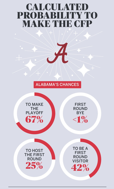 If Bama wins out they're in. If that involves going 10-2 or 11-2 shouldn't matter. If Bama loses to TAMU in the SECCG that cannot put them out. You can't punish a team for making their conference championship game. There are too many spots. You could do that with 2 or 4 spots, but not with 12. You can't reward a team that stays home that weekend.