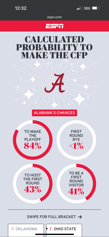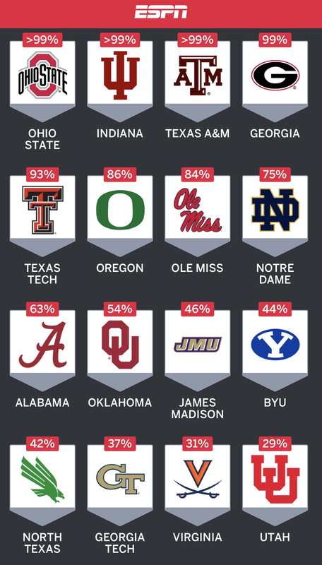 BYU beating Texas tech feels a lot like smu last year. Texas tech will be above us and also playing in a championship game. Unlikely we would be chosen over them if we also lose the sec title