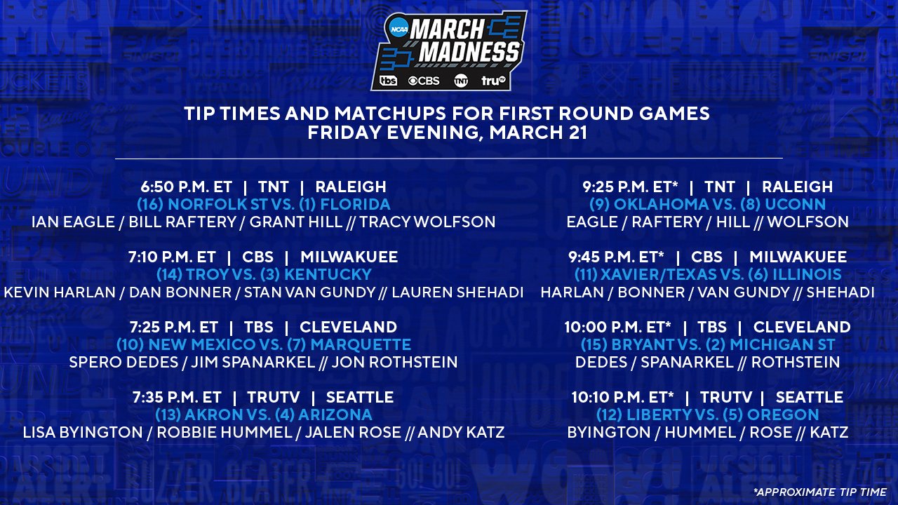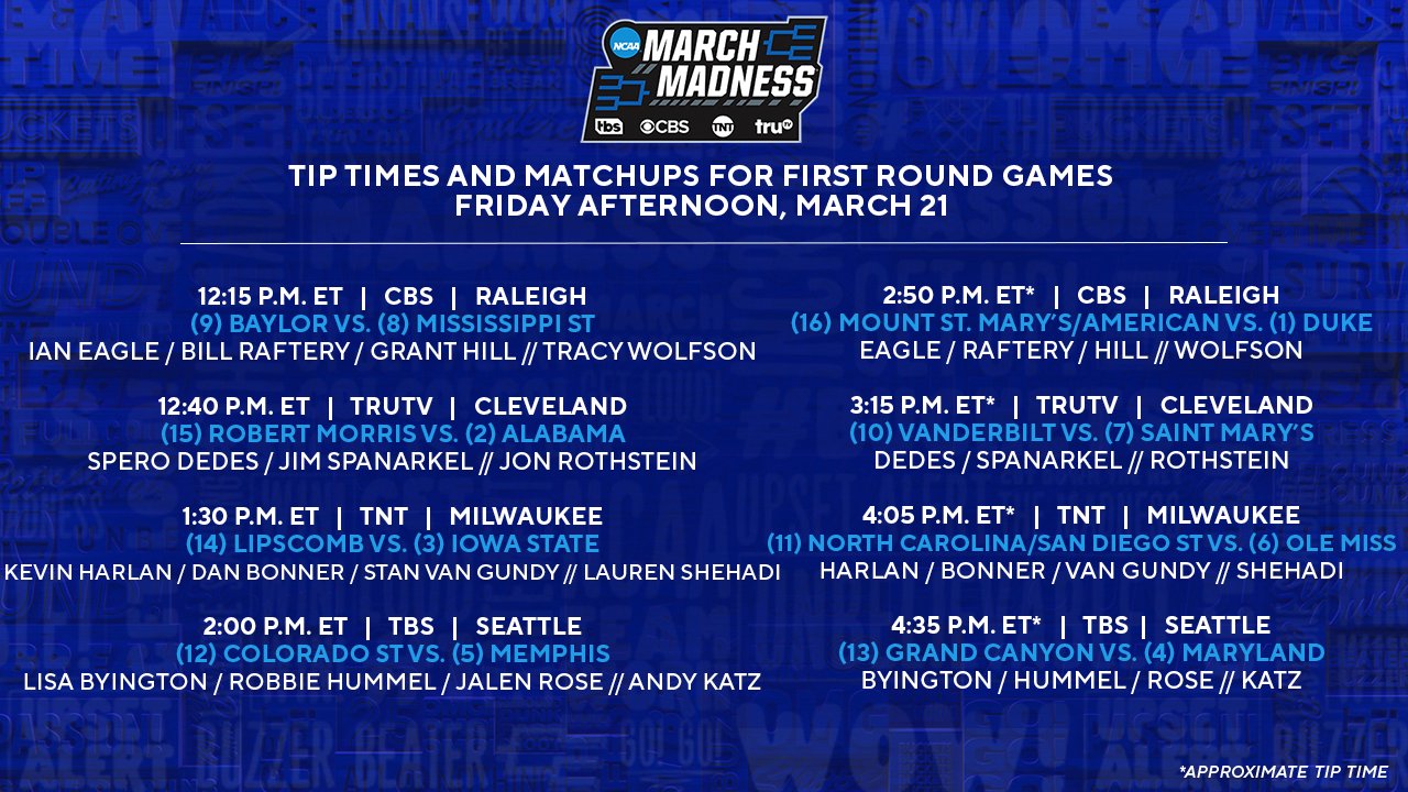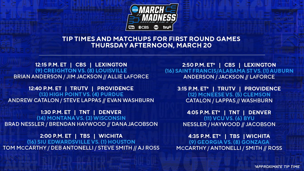 2025 March Madness TV schedule, announcers: How to watch NCAA Tournament, tip times, TV channels, bracket
