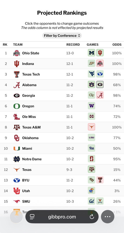 These aren't really accurate because they are ignoring the fact Miami isn't in the ACC CG and only can get in if a bad VT beats Virginia or a mediocre Cal beats SMU
