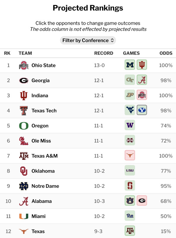 How would aTm be that high after their loss to Texas because if Bama is in that means they beat aTm and Auburn. I don’t see this team beating aTm.