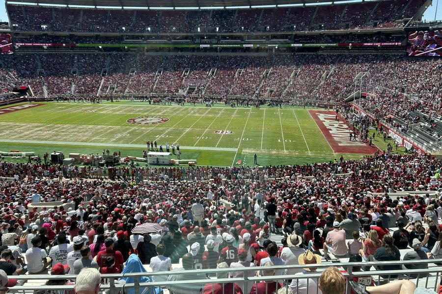 I'm pretty encouraged. The first team oline looked pretty solid even missing some guys we will probably have in fall. The defense looked shaky to start but some of that was the line was blocking open some crazy holes., and the rbs were running hard. We have 3 really good rbs, 2 QBs we can win a lot with (think Simpson looked the best) and lots of good options at wr (I didn't think Bernard is any drop off from Bond, he looks good to go). Overall, offense looks like it's gonna be nasty, and I was surprised at how many different looks we were using in the game. I think we are going to be tough to handle schematically.