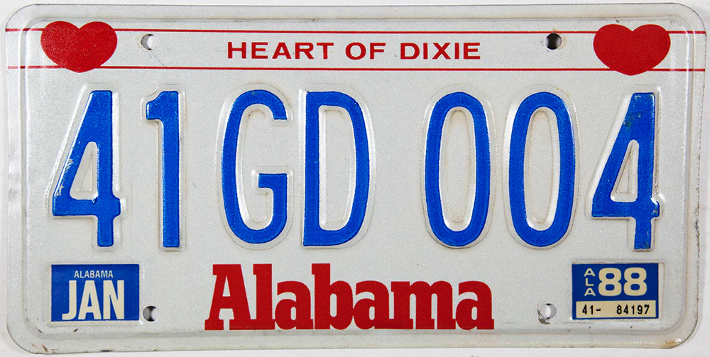 Moved from out of state to Jefferson County last August. Registered for a state of AL license plate/sticker/registrationand got it no issues, it's the plate that looks like this: