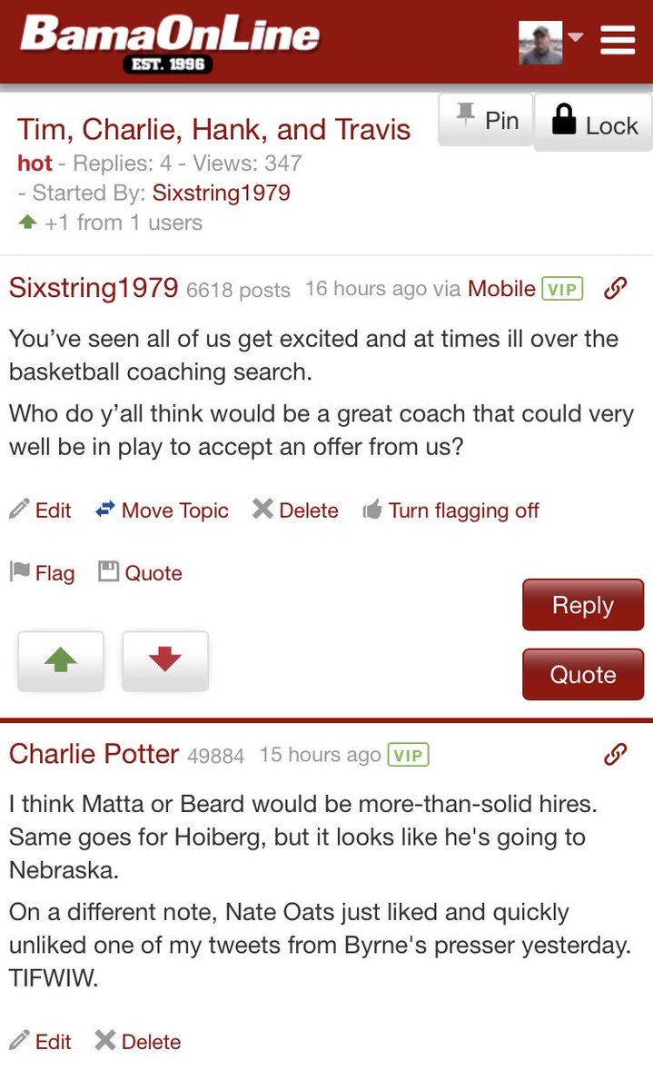This is what I don't get. Matta was a Twitter rumor...why are we made at that? Forbes has 1 NCAAT and just got ousted in the first round of the CBI by Green Bay...we want him over this?
