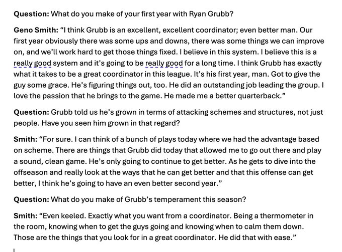 Here's a couple of Q&A's with Geno Smith. He was excited about going into the second season with Grubb.