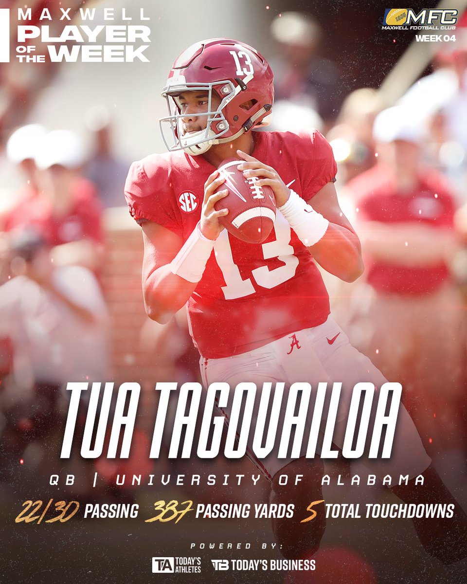 Tua Tagovailoa named national Maxwell Award Player of the Week