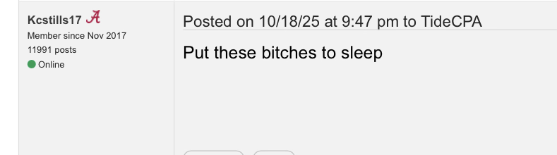 Posted on 10/18/25 at 9:56 pm to Chad4Bama