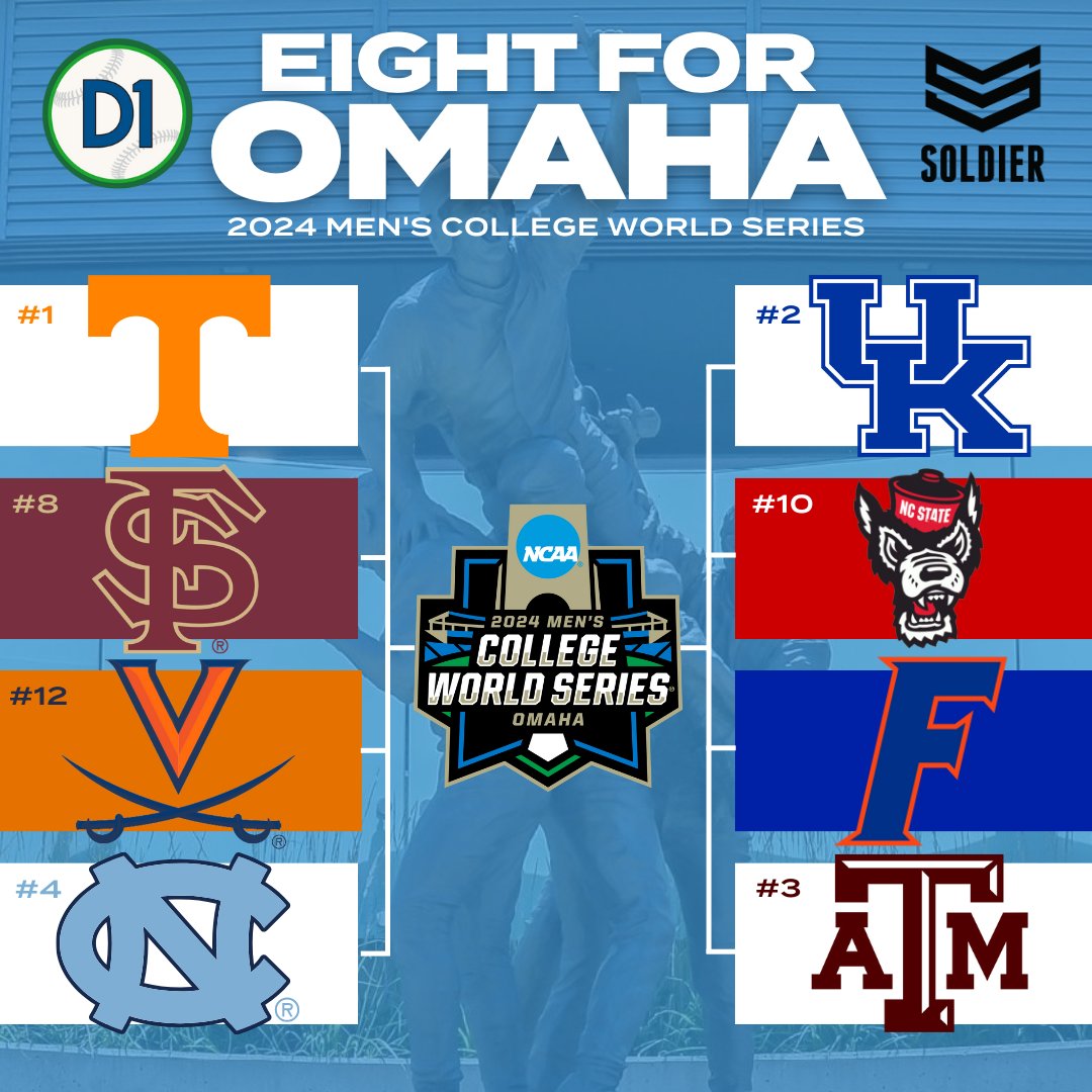The Saturday, June 15 action includes No. 2 national seed Kentucky (45-14) against either No. 7 national seed Georgia (43-16 through June 9) or No. 10 national seed NC State (37- 21 through June 9) at 1 p.m. Central time on ESPN. The other Saturday game features No. 3 national seed Texas A&M (49-13) squaring off against Florida (34-28) at 6 p.m. Central time on ESPN.