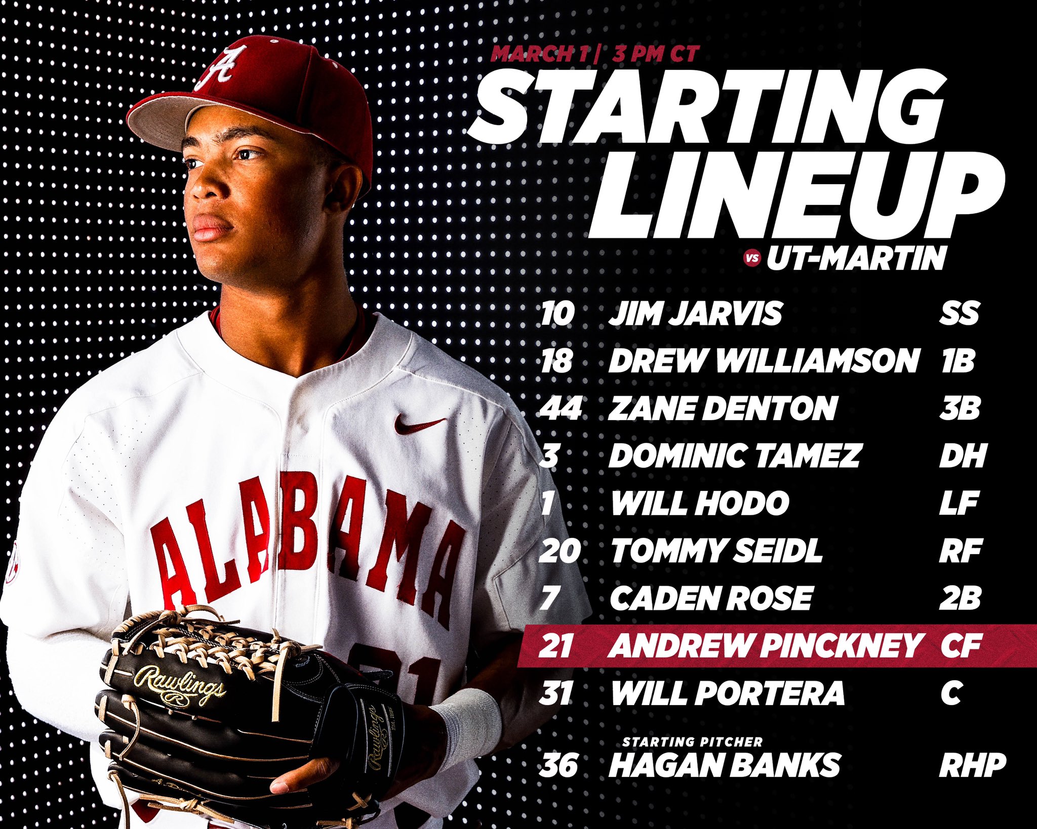 Alabama baseball will open a 10-game homestand with a midweek matchup against UT-Martin on Tuesday. The Crimson Tide will then host in-state foe Troy on Wednesday. Both games are scheduled for a 3 p.m. CT first pitch at Sewell-Thomas Stadium and can be seen live on SEC Network+.