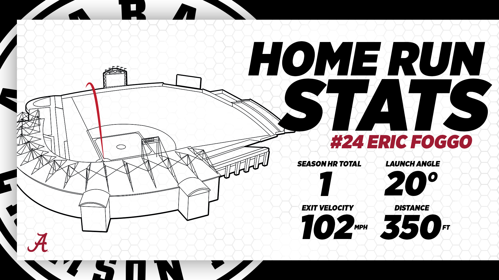 After falling behind in the third inning, a two-run home run by designated hitter Eric Foggo helped propel the Crimson Tide past the Racers.
