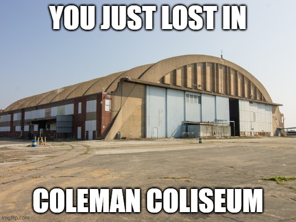 Does anyone have that meme with some 3rd world airplane hanger that says "you just lost at Coleman coliseum"?