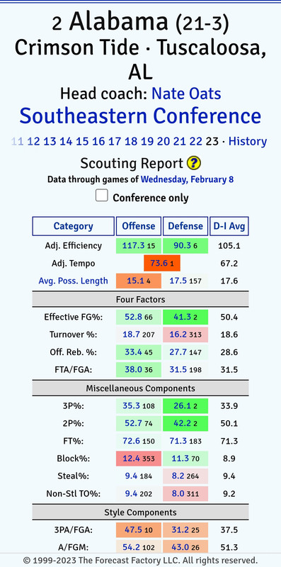 Also is amazing to see just how much that AdjD rating is keeping Tennessee propped up. If they ranked 3rd in AdjD, they would drop from 4th overall to 8th. That offense is going to keep them from a deep run in March.