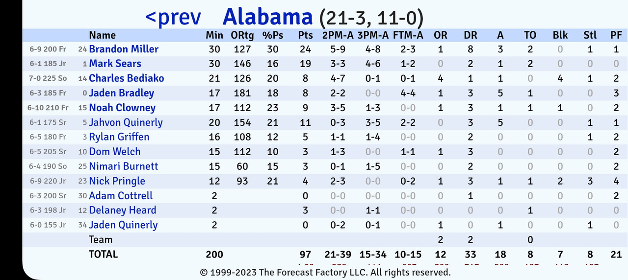 Dropped 97 on a top 10 defense with walk-ons in 4 minutes to go. Could have easily hung a 100+ if we wanted. Nice.