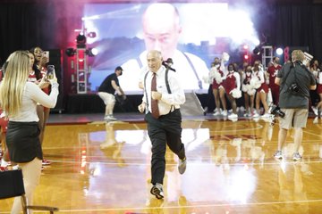 Crimson Tide men's and women's basketball players performed for the first time this season in front of fans tonight, including skills, dunk and three-point contests with both Alabama coaches addressing the crowd in attendance.