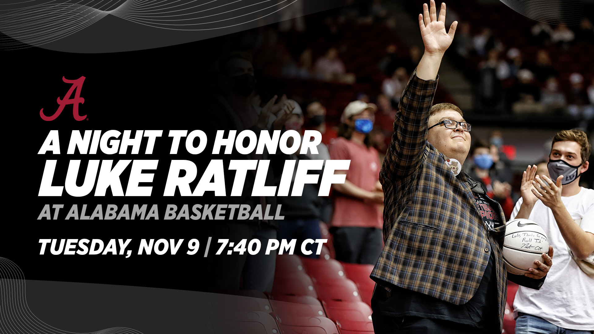 TUSCALOOSA, Ala. – Alabama basketball will honor Cameron Luke Ratliff in between the season-opening doubleheader on Tuesday, Nov. 9 at approximately 7:40 p.m. CT. Ratliff, affectionately known as "Fluffopotamus" or "Fluff," was an active student leader and president of Crimson Chaos, who passed away on Friday, April 2, 2021 at the age of 23.