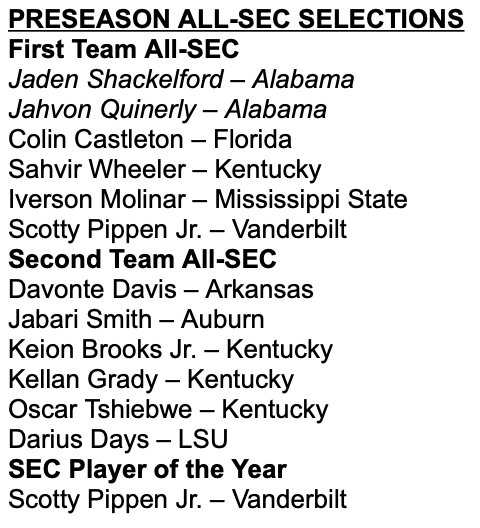 "I think the SEC is one of the best basketball leagues in the country right now. We can really help the league out with how we play in the non-conference. We have a lot of hard games in there."